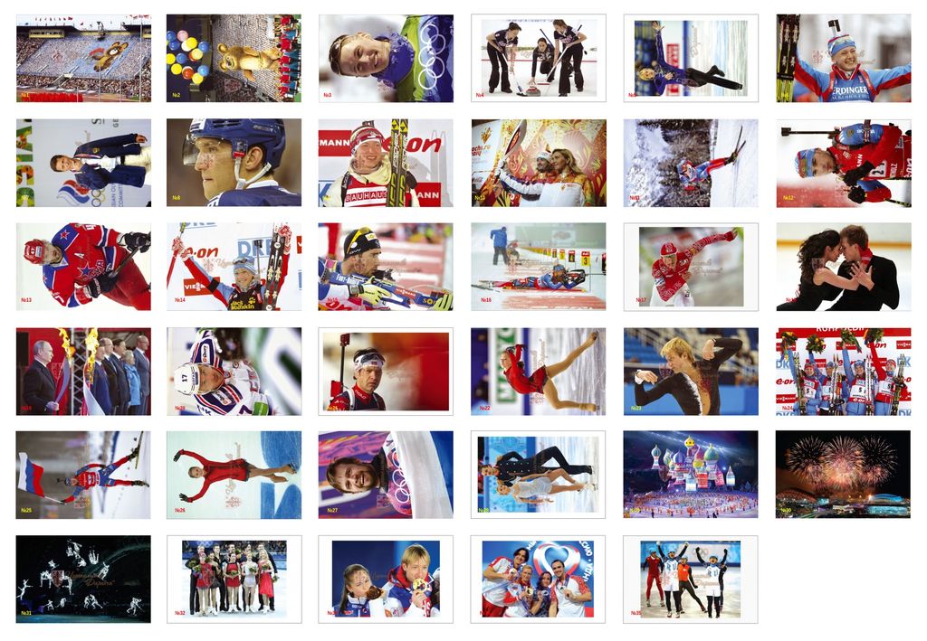 Внимание: на январь 2022 года открытки есть в наличии, как по-штучно, так и в наборах с футлярами! Очень редкий эксклюзивный набор лицензионных коллекционных открыток от издательства «Даринчи» (официальные изображения, купленные в агентстве ИТАР-ТАСС), которые посвящены XXII зимним Олимпийским играм в городе Сочи в 2014 г. Набор выпущен очень малым тиражом — всего 999 экземпляров!