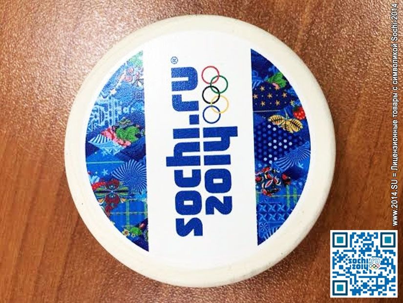 На шайбе нанесен так называемый «паттерн» — цветной узор «лоскутное одеяло» в синей цветовой гамме, являющийся фирменным стилем Олимпиады-2014.