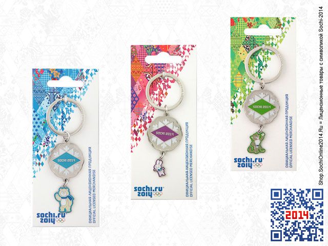 Тяжелые металлические брелоки с глубоко хромированным покрытием. На символ «снежинки» и фигурки талисманов Сочи-2014 качественно нанесена цветная эмаль. Талисманы дополнительно покрыты прозрачной полимерной смолой. Брелки можно купить как по-отдельности, так и набором, что получается значительно дешевле.