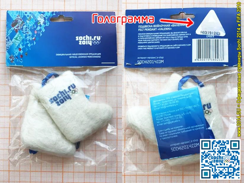 Подлинность олимпийского происхождения новогодних игрушек Валенки Сочи 2014 подтверждается защитной голограммой с уникальным серийным номером, которые невозможно подделать, а код можно всегда проверить здесь: 2014.su/fake. Гарантируем качественную упаковку! Доставка елочных украшений возможна в любую точку России вкл. Крым, а также по всему миру, вкл. Украину! После предоплаты только лишь доставки возможен наложенный платеж (оплата при получении после осмотра).