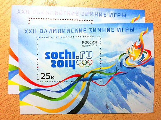 Самая первая почтовая марка, которая была выпущена в честь предстоящих Олимпийских игр в Сочи-2104.