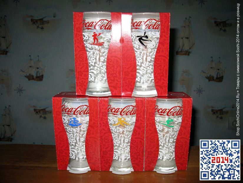 Предлагаем Вашему вниманию уникальный набор эксклюзивных стеклянных бокалов «Coca-Cola» с символикой XXII зимних Олимпийских игр «Сочи-2014», которые были изготовлены во Франции ограниченным тиражом специально для рекламной акции компании «Кока-Кола», которая проводилась с 29 апреля по 30 июня 2013 года.