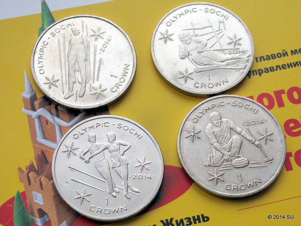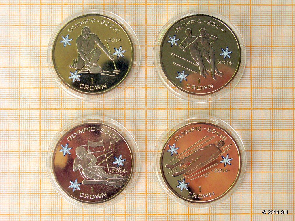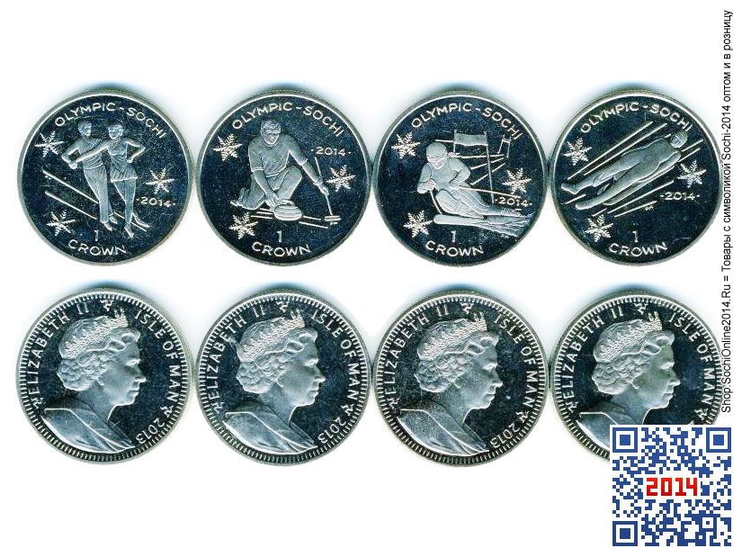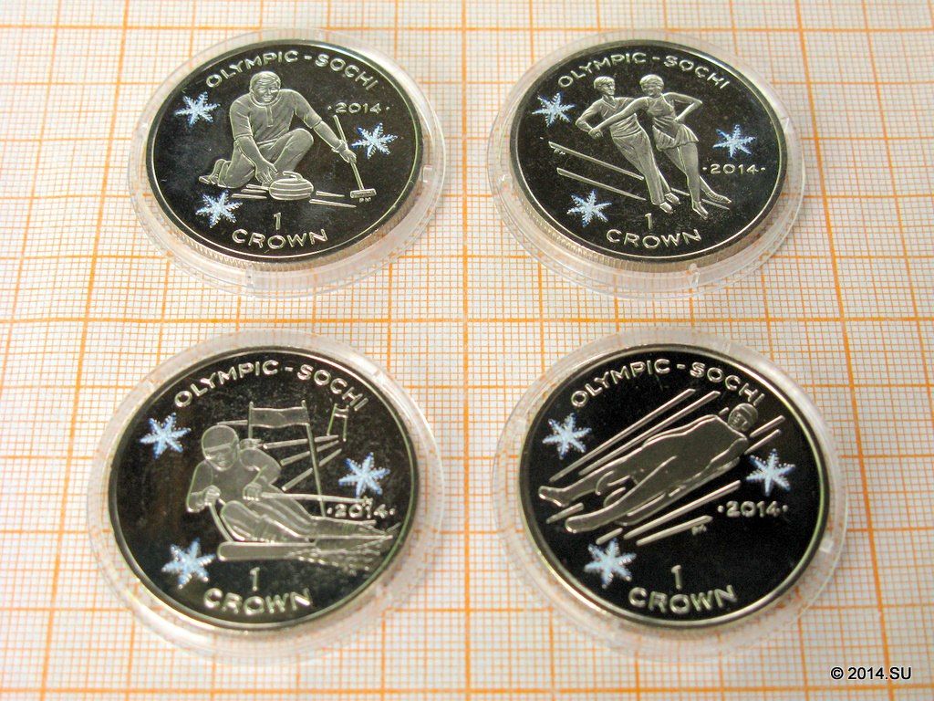 Эксклюзив для коллекционеров и нумизматов — набор из четырех иностранных монет «кронового» размера, посвященных XXII зимним Олимпийским играм в Сочи-2014. В наличии есть наборы двух типов: с «простыми» и «цветными» монетами (у последних снежинки раскрашены узорами сине-голубого оттенка).