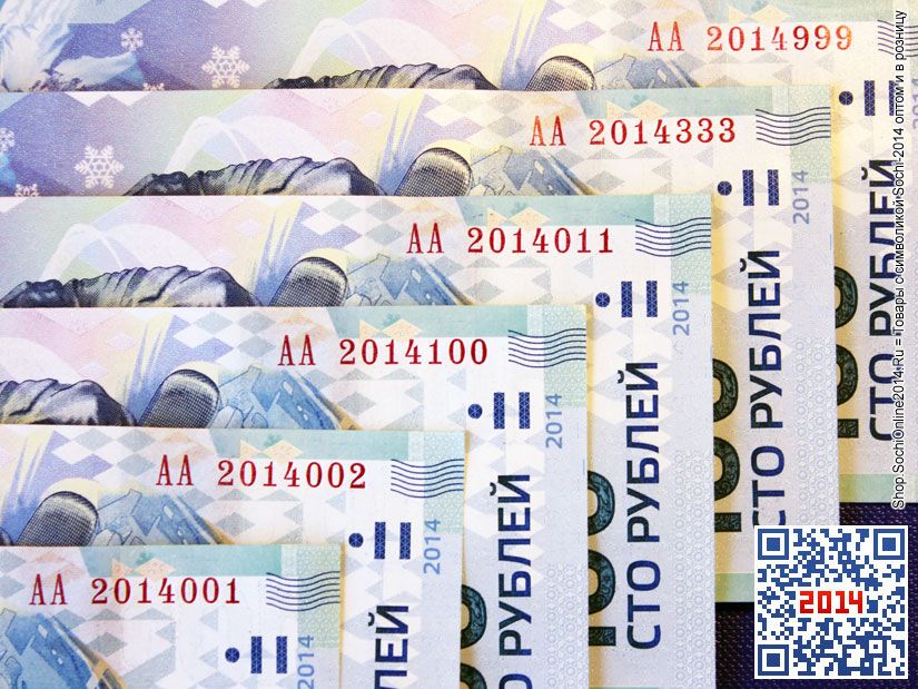 Красивые Олимпийские номера купюр серии АА, начинающиеся с числа «2014», символизирующего год проведения олимпийских игр. На сегодня доступны любые комбинации от АА2014001 до АА2014999.