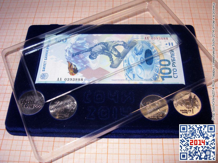 Представляем Вашему вниманию один из самых дешевых наборов Олимпийских монет вместе с 100-руб. купюрой Сочи-2014. Данное предложение особенно выгодно для оптовых закупок и корпоративных подарков.